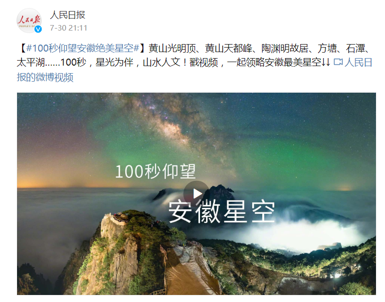 人民日报邀你共赏宁国绝美星空,青龙湾强势出镜!